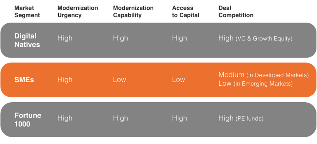 We specialize in the needs of the “Middle Trillion” - small-and-medium sized enterprises (SMEs) in industries ideally suited to digital transformation: